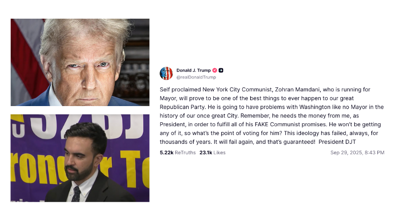 President Donald Trump criticized New York City mayoral candidate Zohran Mamdani in a Truth Social post, warning that his policies could jeopardize the federal dollars the city depends on.